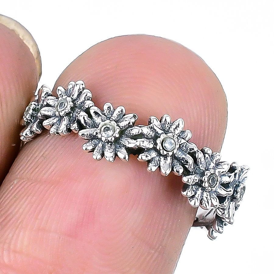 Flower Look Stone 925 Silver Statement Daughter Gift Sister Artisan Ring Jewelry