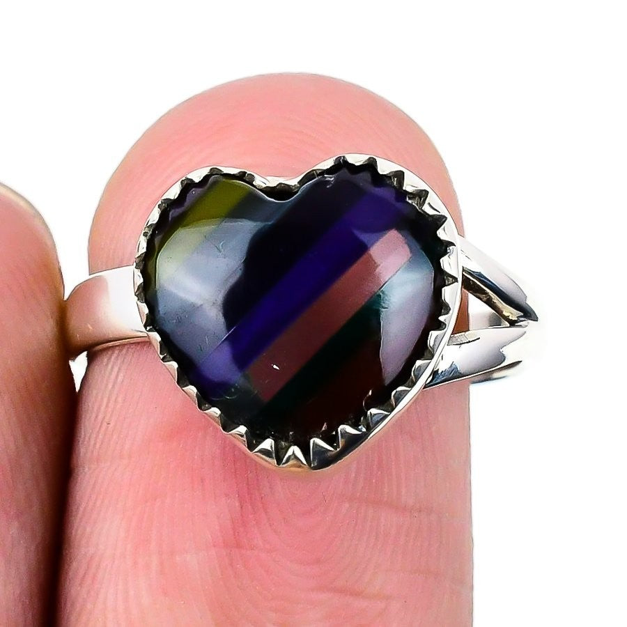 Fluorite Gemstone Solid Silver Wedding New Statement Third Eye Chakra Ring US 8