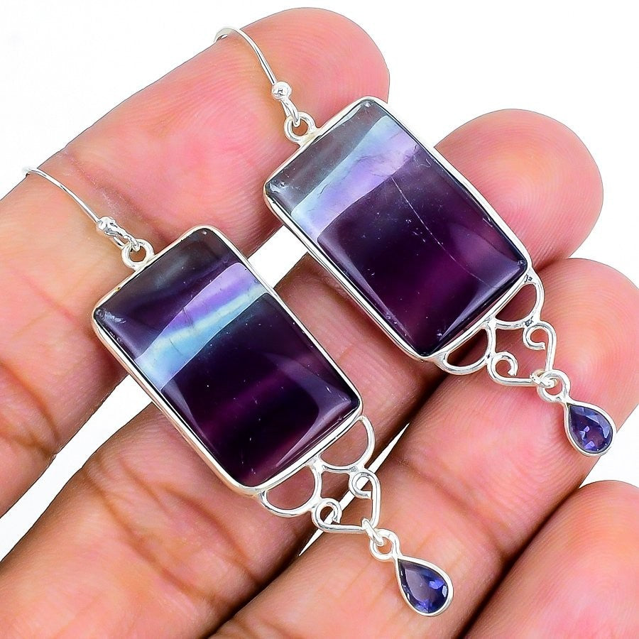 Fluorite Stone 925 Sterling Silver Engagement Hook Daughter Drop Dangle Earrings