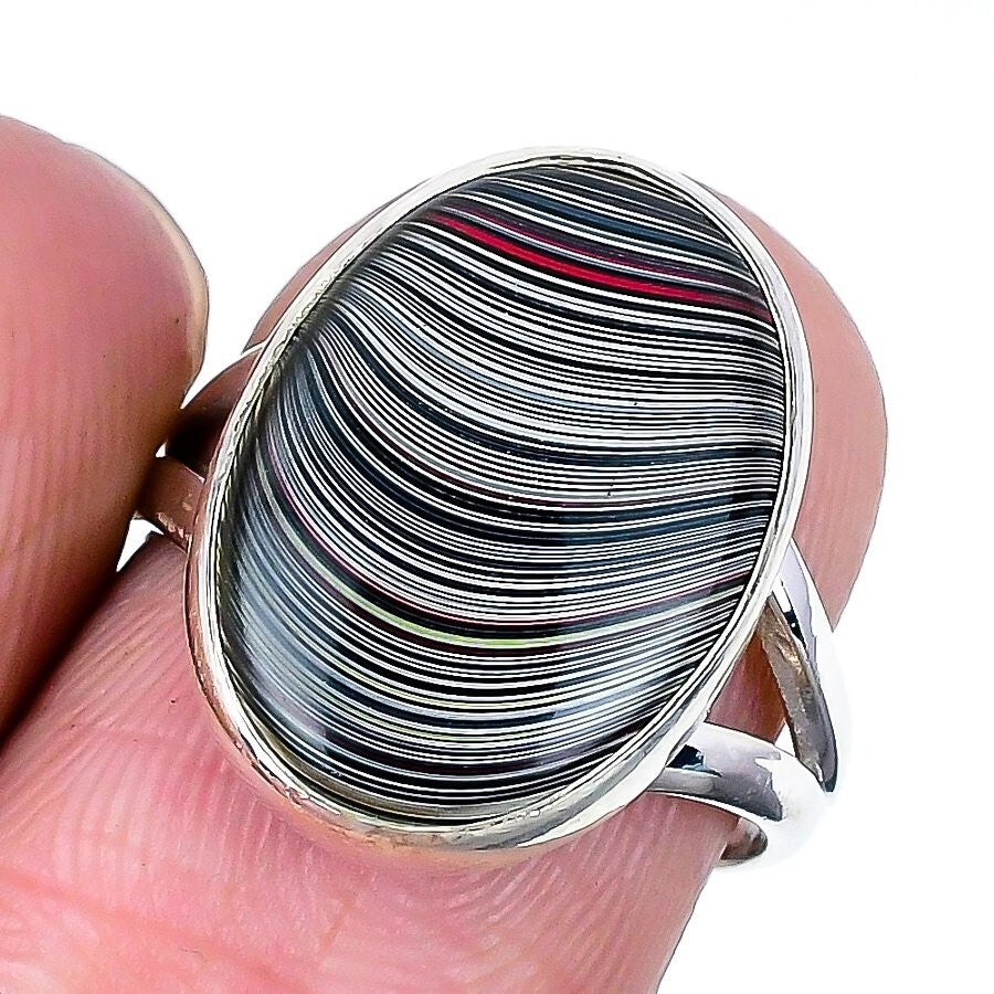 Fordite Detroit Agate Stone 925 Silver Artisan Statement Sister Ethnic Ring US 7