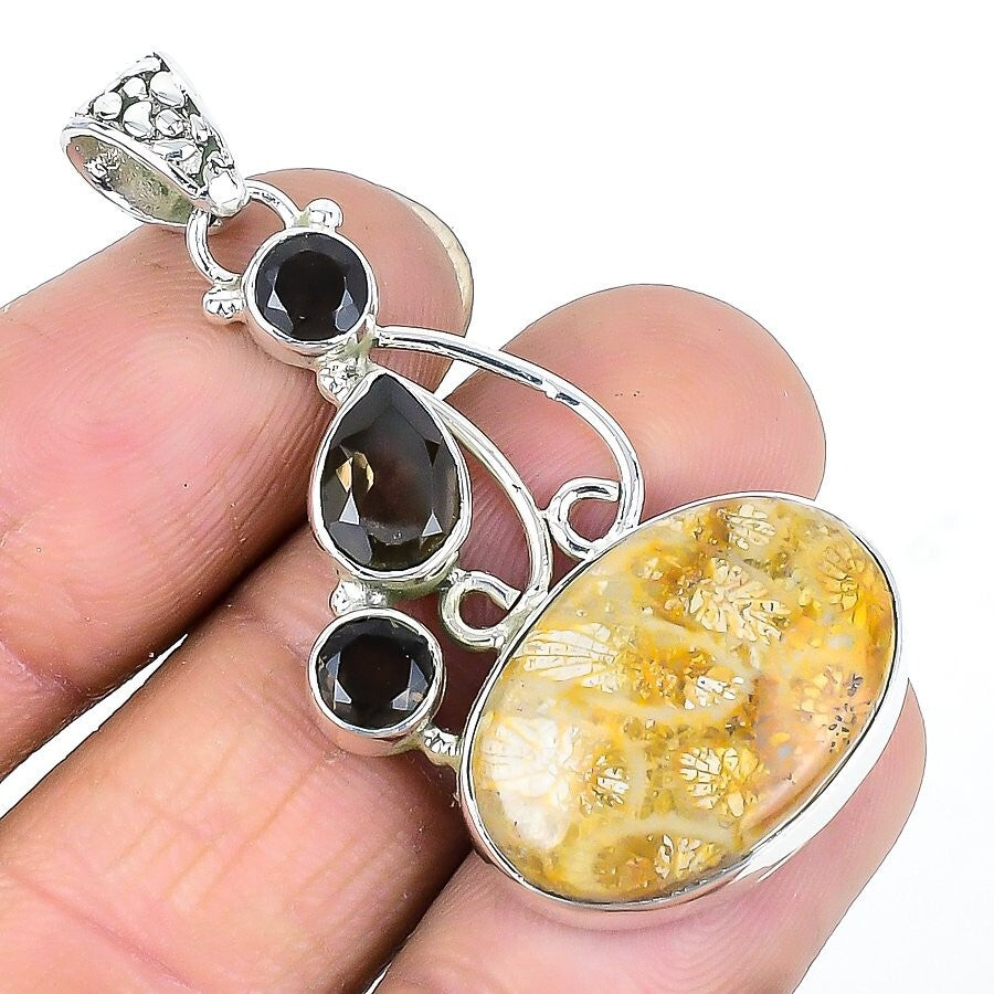 Fossil Coral Gemstone 925 Sterling Silver Daughter Birthday Boho Pendant Jewelry
