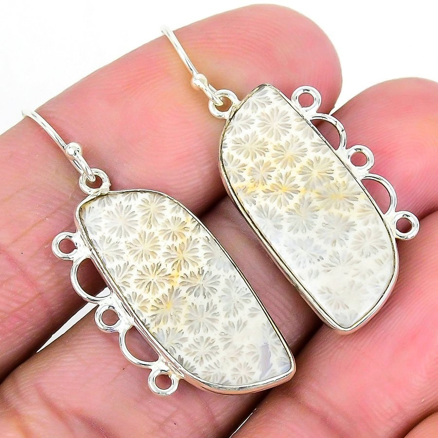 Elegant Fossil"Coral Gemstone 925 Silver Hook Trendy Dangle