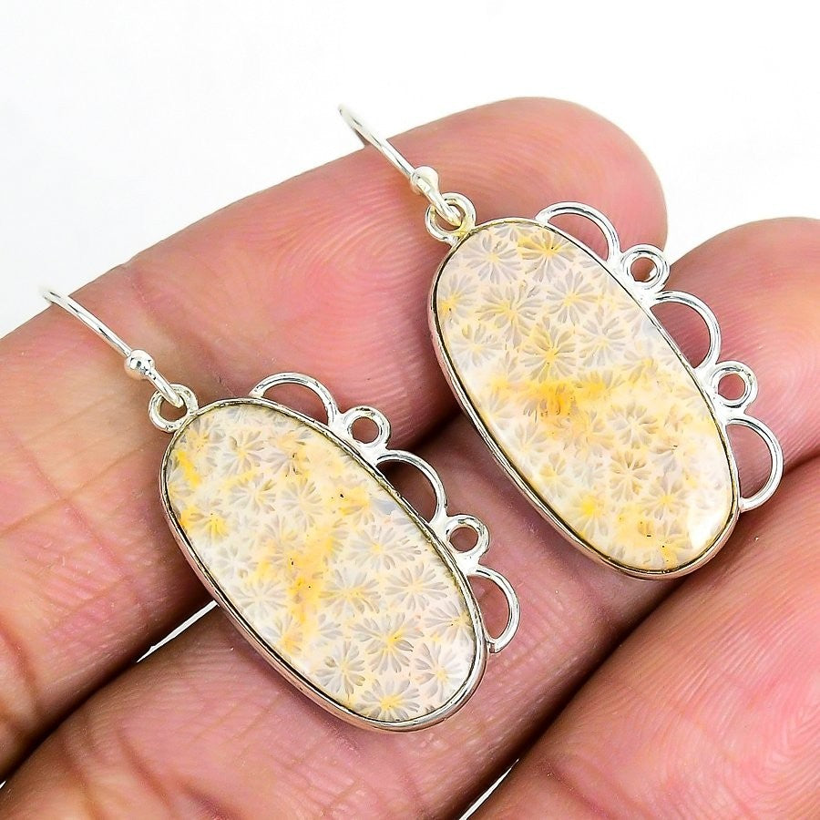 Elegant Fossil"Coral Stone Solid Sterling Silver Birthday Dr