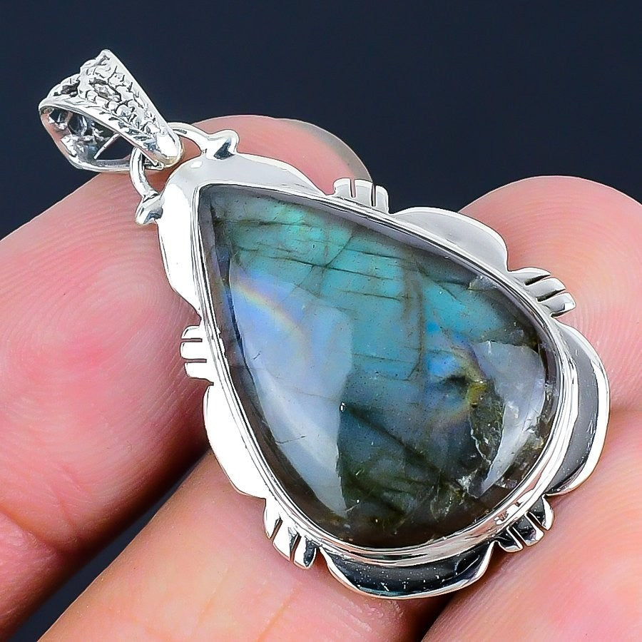 Friendship Day Deal Labradorite Stone Solid Silver Bezel Artisan Wife Pendant