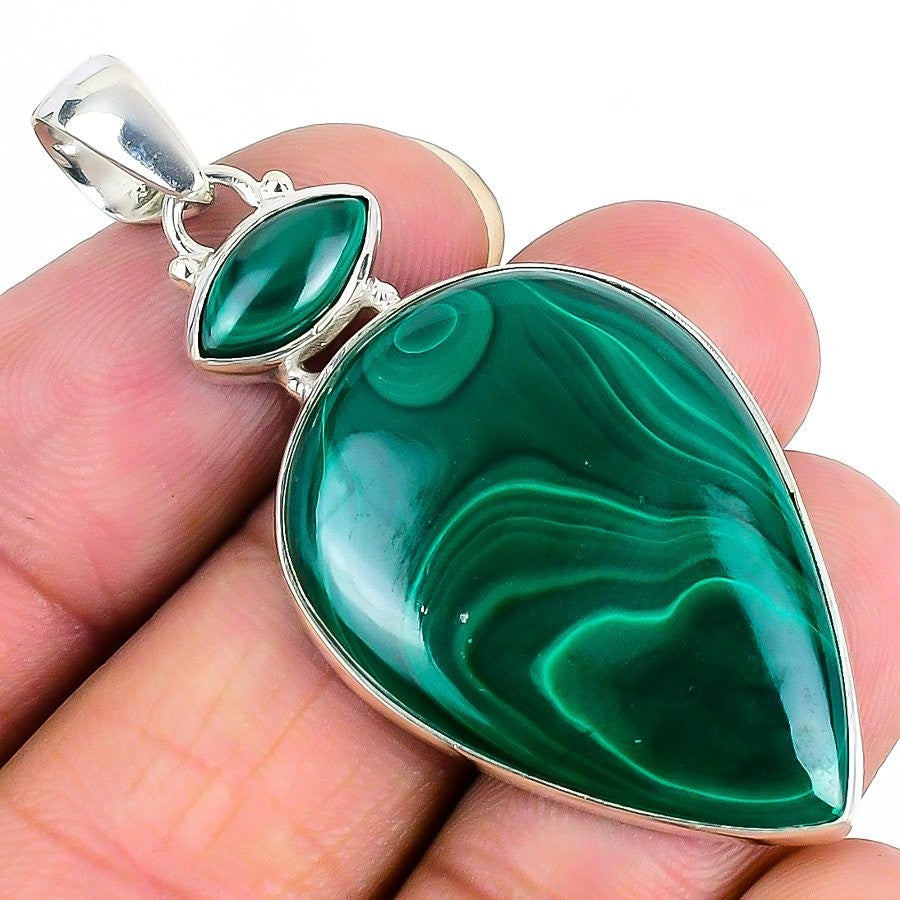 Friendship Day Deal Natural Malachite Bezel Mother Boho Pendant 925 Solid Silver