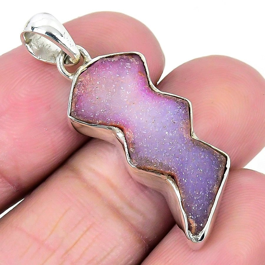 Friendship Day Deal Pink Titanium Druzy Gemstone Channel Set Pendant 925 Silver