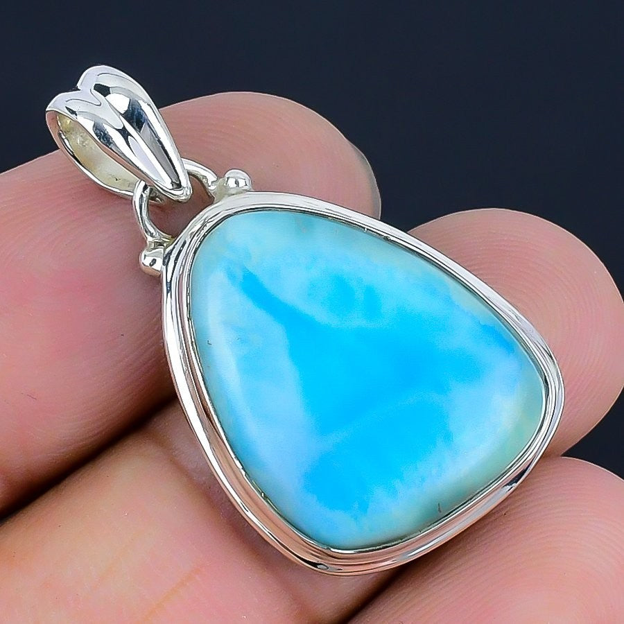 Friendship Day Deal Throat Chakra Natural Larimar Solid Silver Pendant Jewelry
