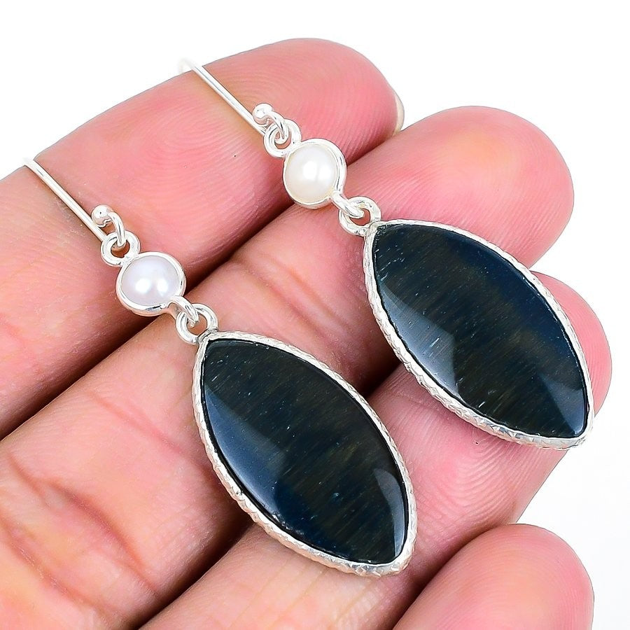 Friendship Day Sale Black Tiger Eye Stone 925 Silver Hook Dangling Wife Earrings