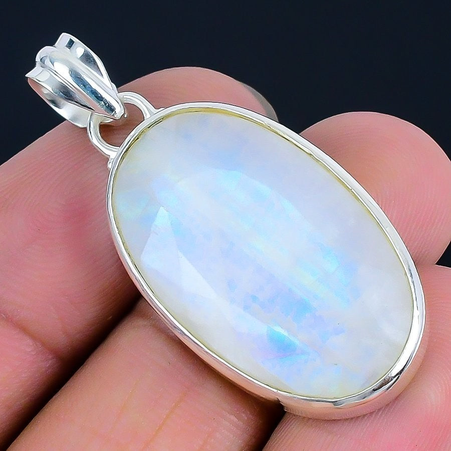 Friendship Day Sale Moonstone Gemstone 925 Sterling Silver Crown Chakra Pendant