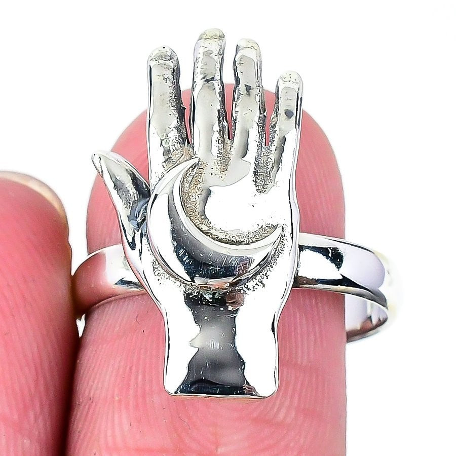 Friendship Day Sale Natural Hand & Moon 925 Sterling Silver Cluster Wedding Ring
