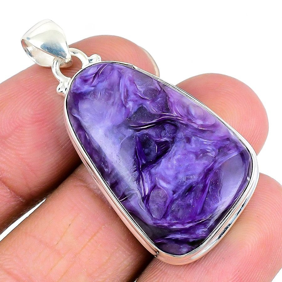 Friendship Day Sale Natural Russian Charoite Sterling Silver Boho Bezel Pendant