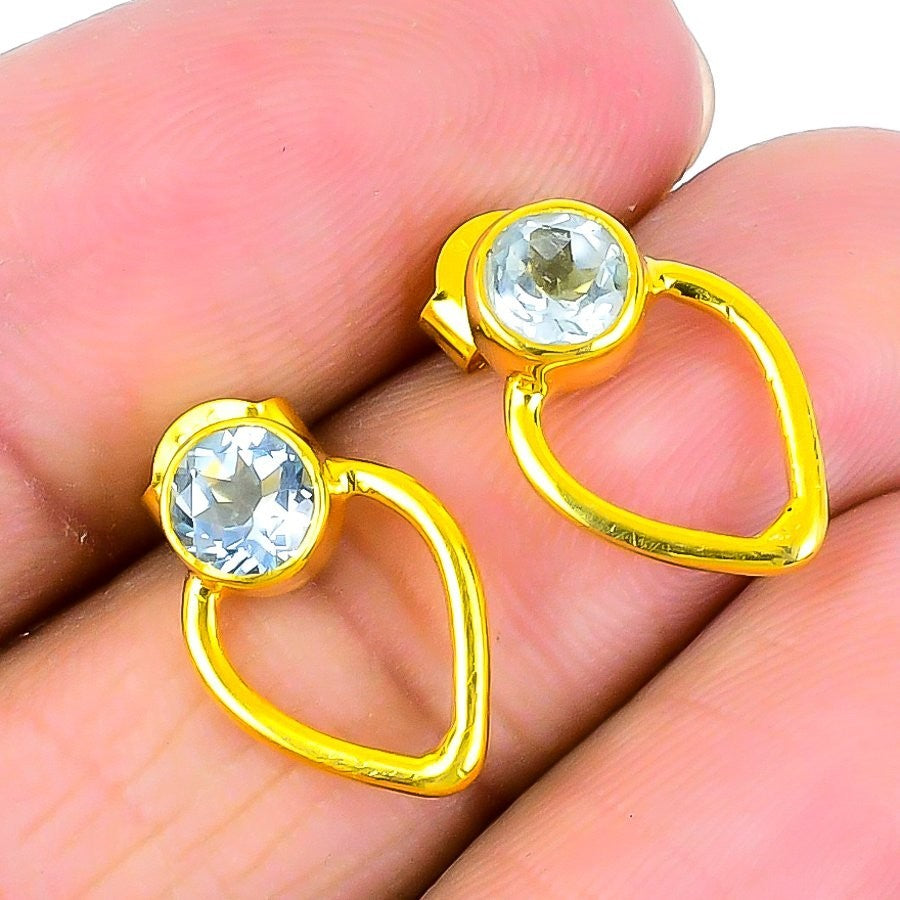 Friendship Day Sale Natural Swiss Blue Topaz Solid Silver Dangling Boho Earrings
