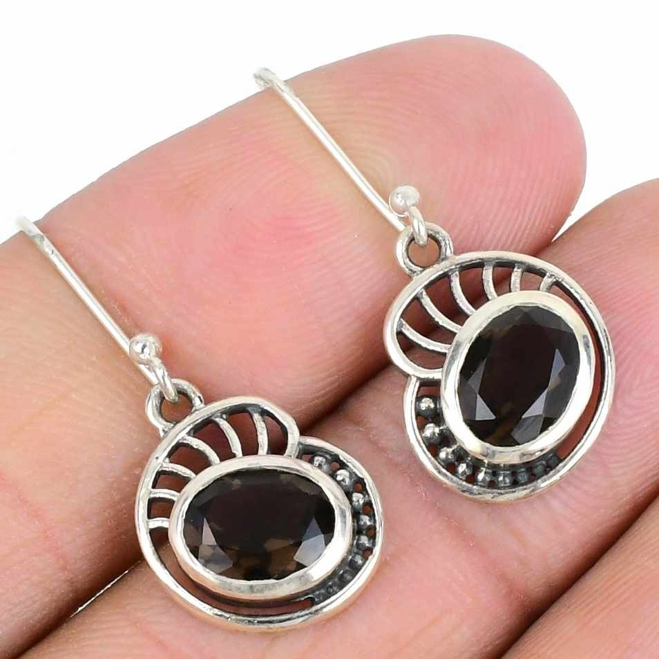 Friendship Day Sale Smokey Stone Hook Dangle Earrings Jewelry 925 Solid Silver