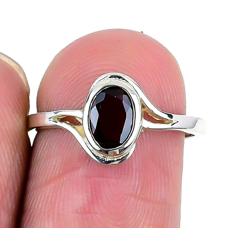 Garnet Gemstone Solid Silver Birthday January Statement Anniversary Ring US 6.5
