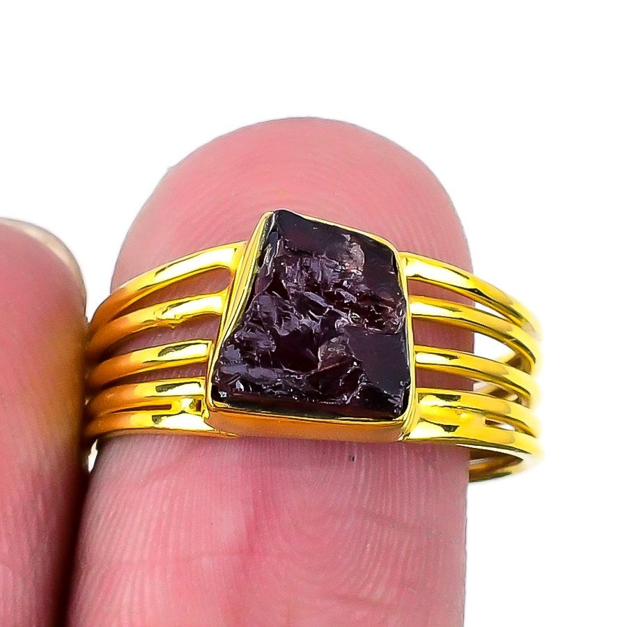 Garnet Rough Gemstone 925 Solid Silver Channel Set Cluster January Ring Size 8.5