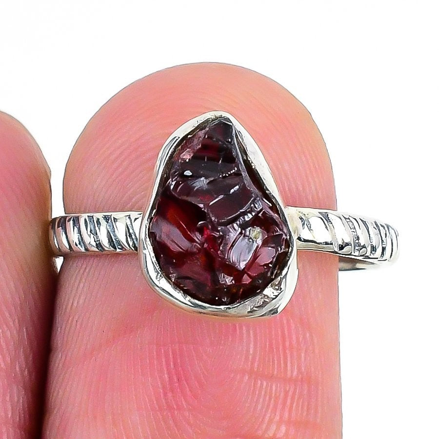 Garnet Rough Gemstone 925 Solid Silver Channel Set Statement Stackable Ring US 8