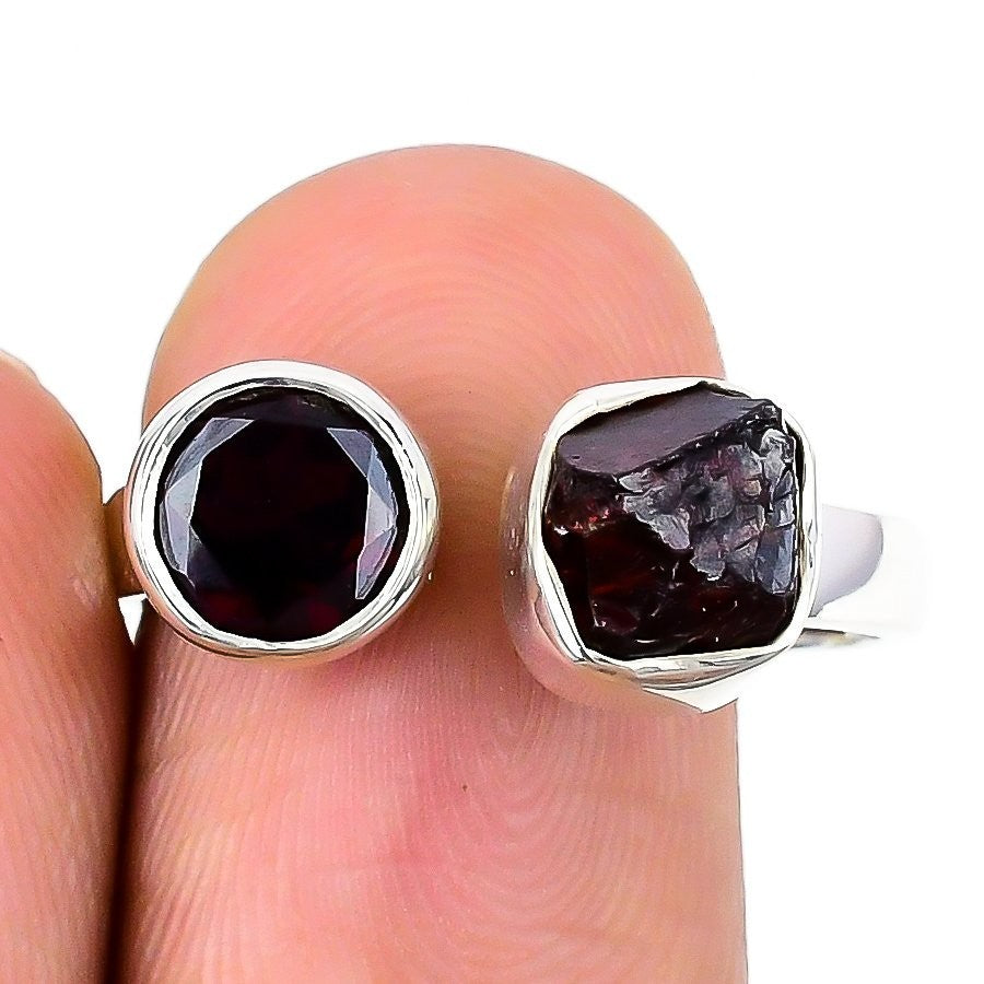 Garnet Rough Gemstone 925 Sterling Silver Statement January Ring Jewelry US 9.5