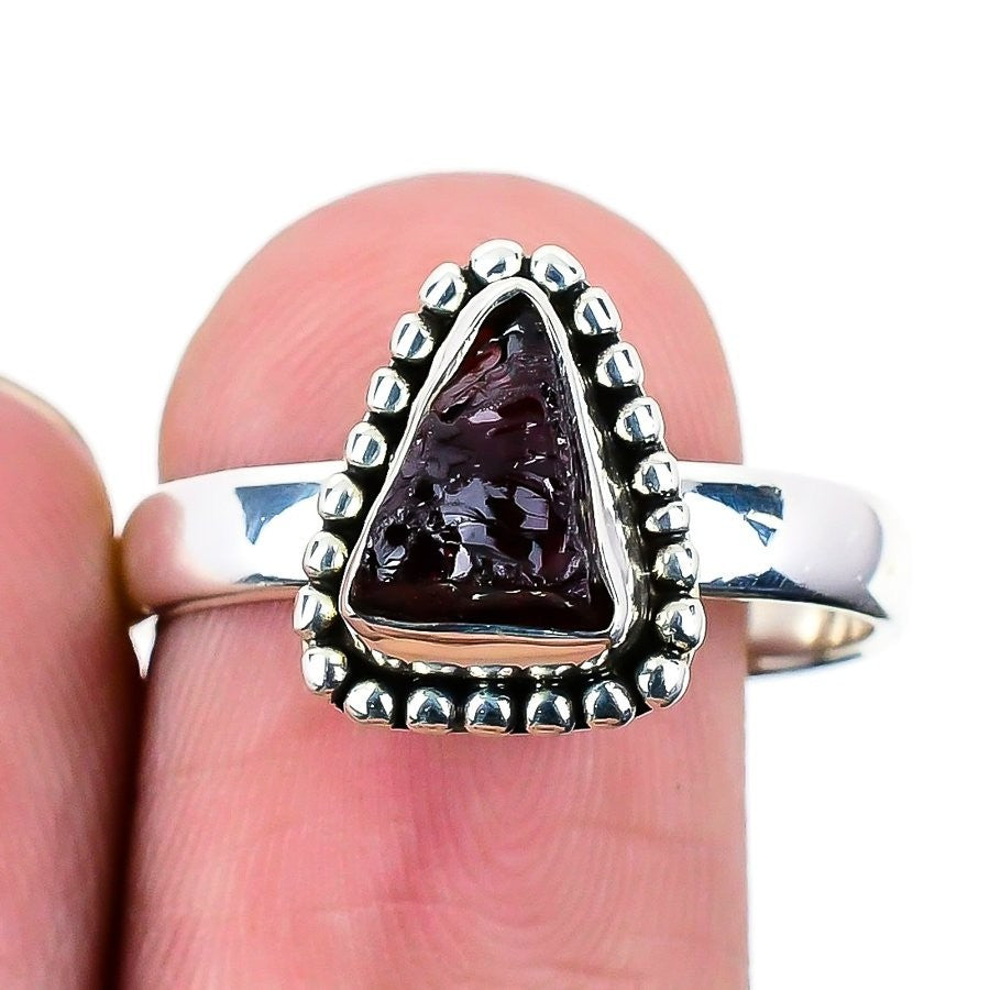 Garnet Rough Gemstone Solid Sterling Silver January Statement Ring Jewelry US 10