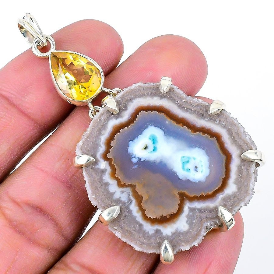 Geode Druzy Gemstone Solid Sterling Silver Handmade Wife Artisan Pendant Jewelry