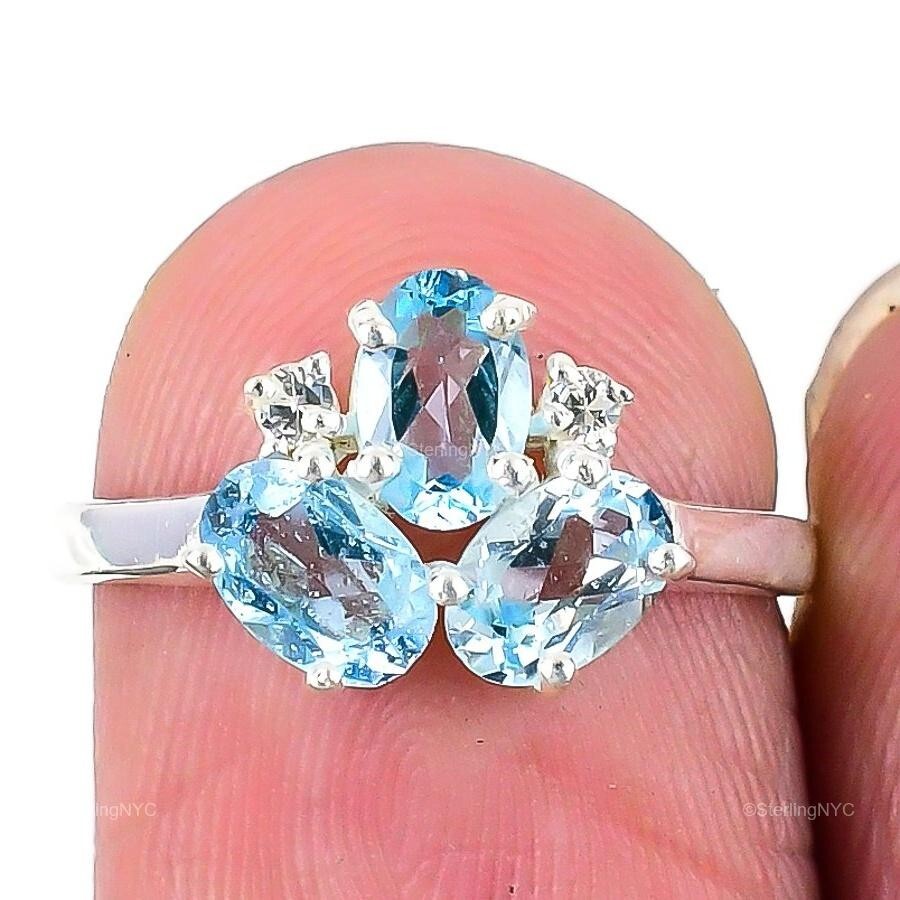 Elegant Gift For Her Natural Swiss Blue Topaz in 925 Sterlin