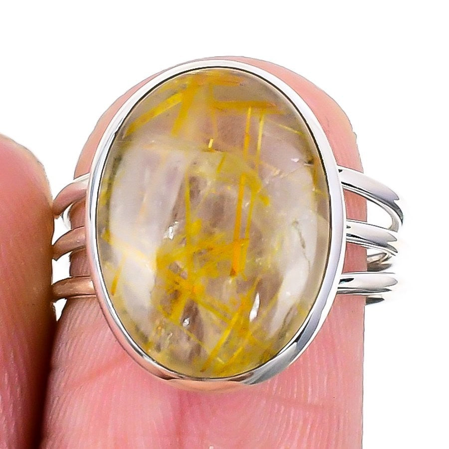 Golden Rutile Gemstone 925 Silver Daughters Day Cluster Mother New Ring Size 7
