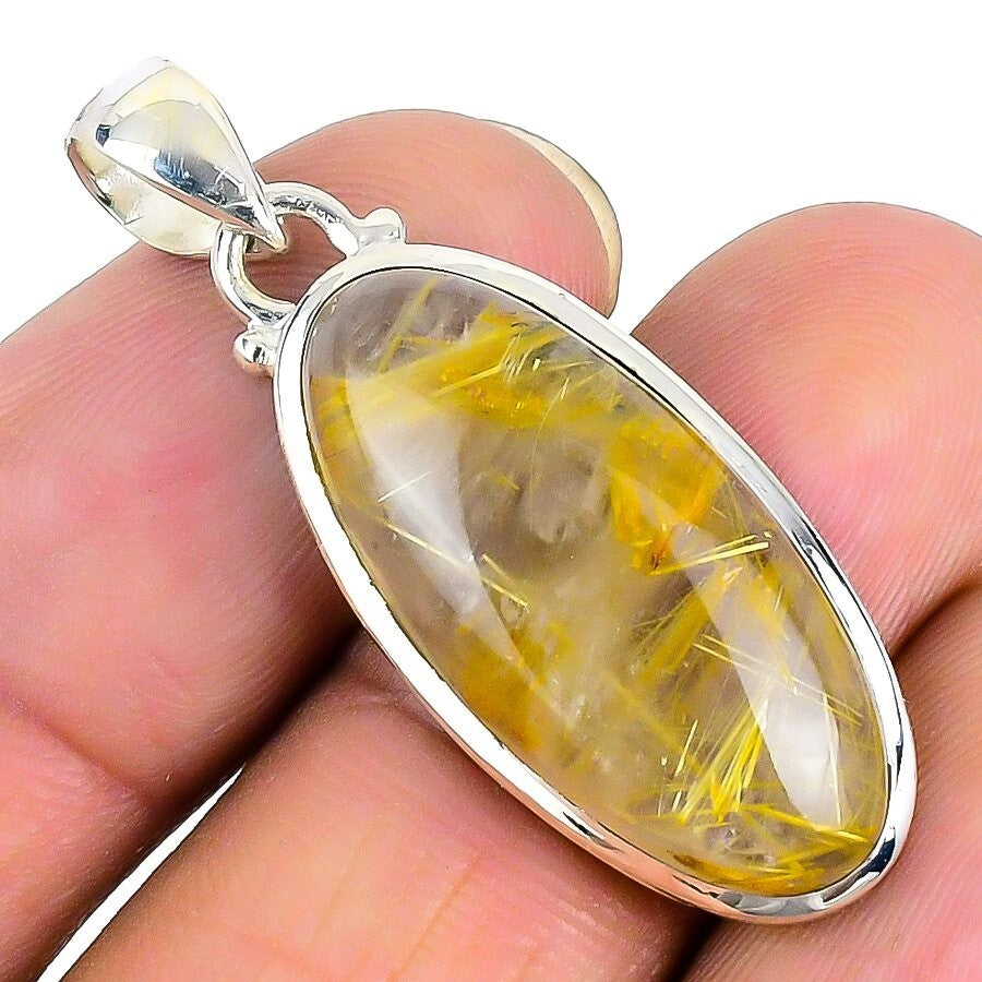 Golden Rutile Gemstone 925 Solid Silver Womens day Mother Bezel Wedding Pendant