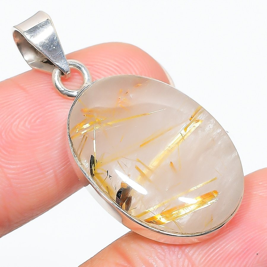 Golden Rutile Gemstone Anniversary Daughters Day Trendy Pendant Sterling Silver