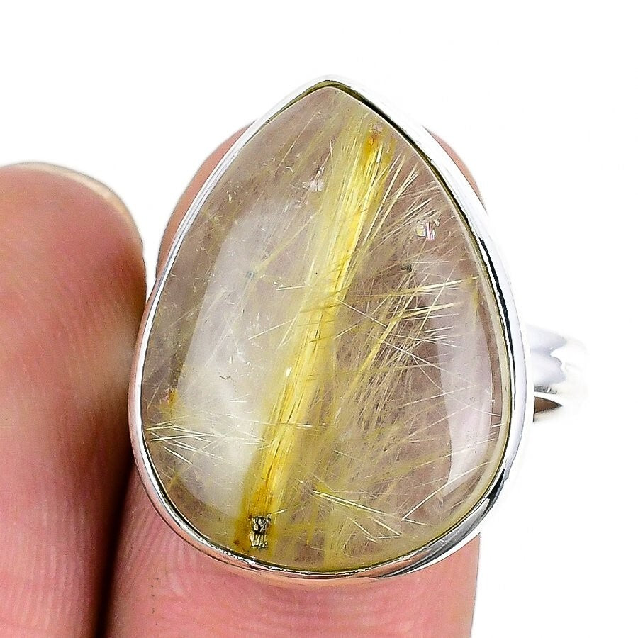 Golden Rutile Gemstone Bezel Handcrafted Wedding Statement Ring 925 Solid Silver