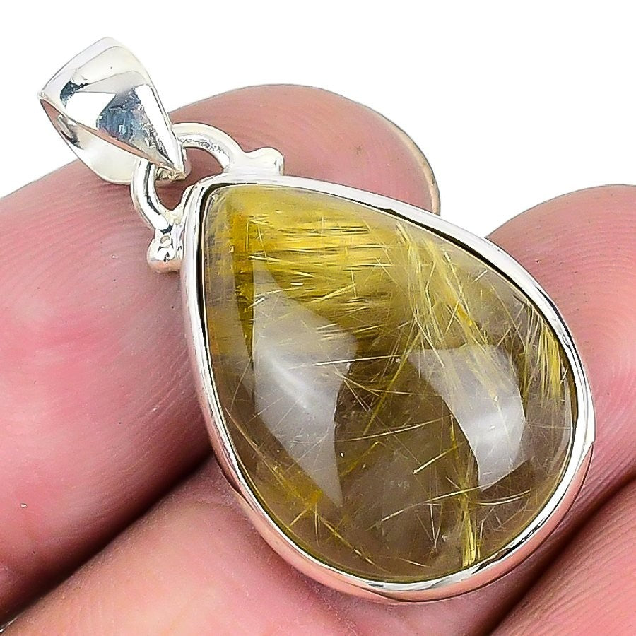 Golden Rutile Gemstone Channel Set Engagement Pendant Jewelry 925 Solid Silver