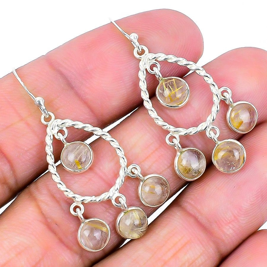 Golden Rutile Gemstone Dangling Sister Earrings Jewelry Solid Sterling Silver