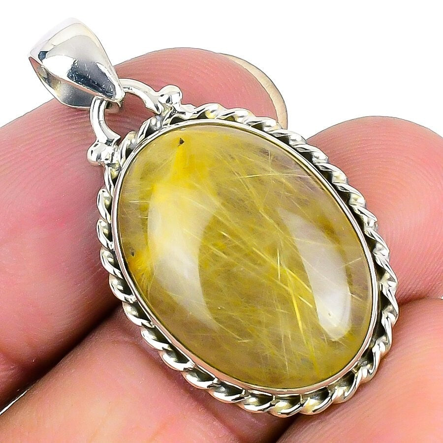 Golden Rutile Gemstone Handcrafted Daughter Trendy Pendant Solid Sterling Silver