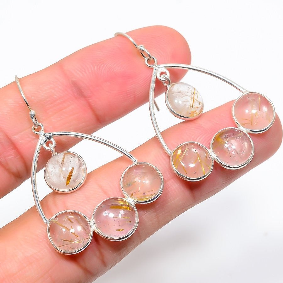 Golden Rutile Gemstone Solid Silver Dangle Drop Daughter Elegant Boho Earrings