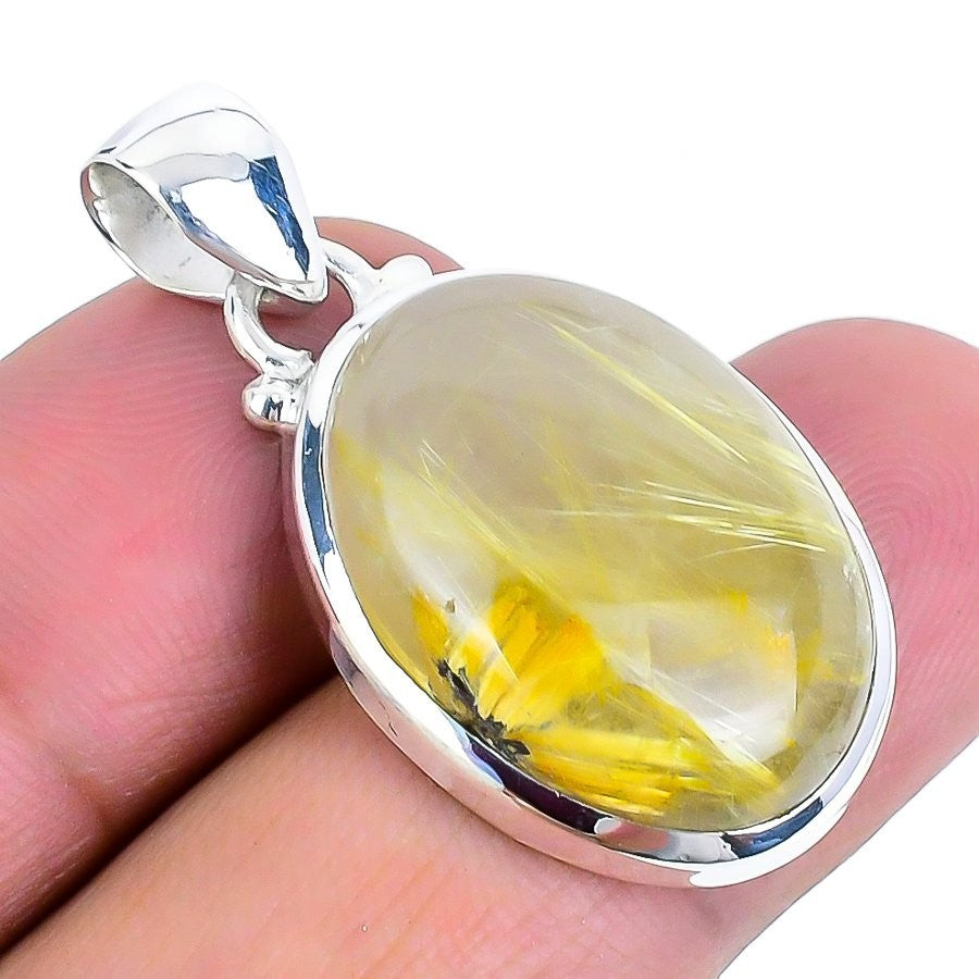 Golden Rutile Gemstone Solid Silver Handcrafted Boho Daughter Pendant Jewelry