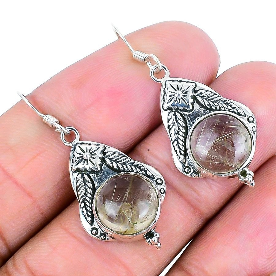 Golden Rutile Gemstone Sterling Silver Daughter Drop Hook New Earrings Jewelry