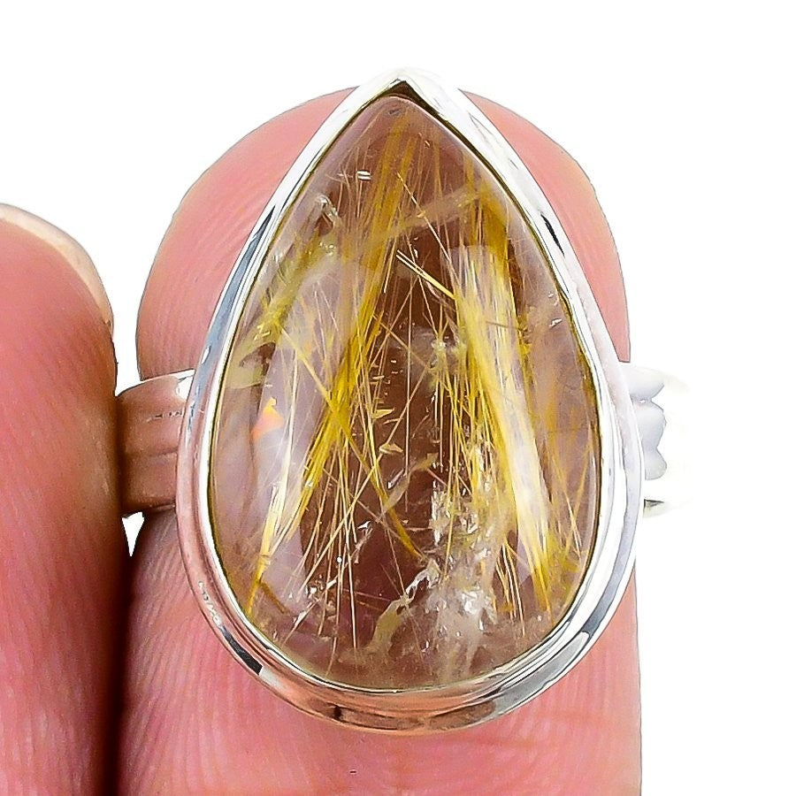 Golden Rutile Gemstone Sterling Silver Wedding Wife Statement Ring Jewelry US 7