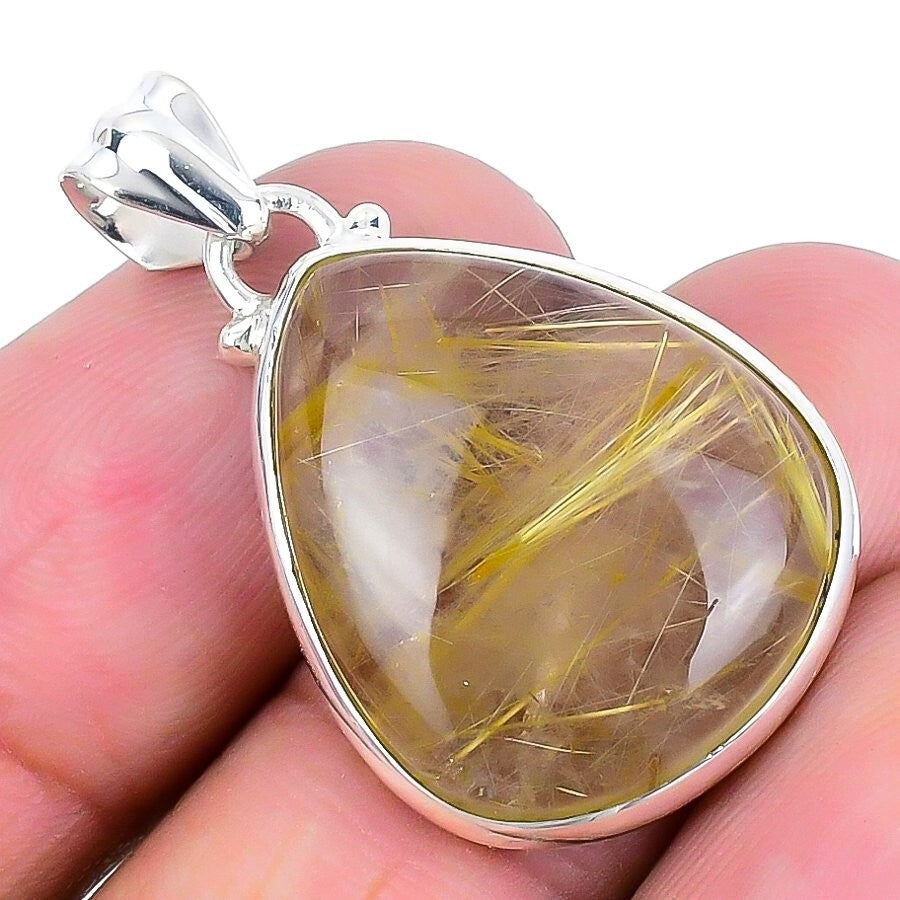 Golden Rutile Gemstone Wedding Mother Anniversary New Pendant 925 Solid Silver
