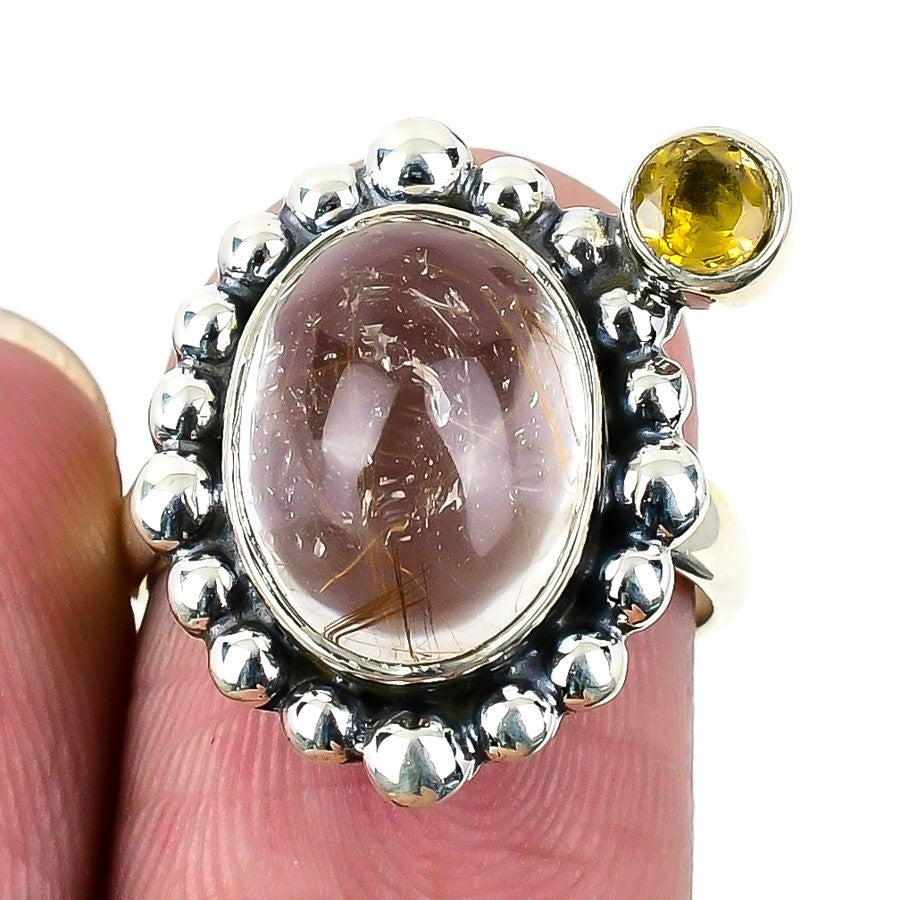 Golden Rutile Stone 925 Silver Handcrafted Statement Daughter Ring Jewelry US 7