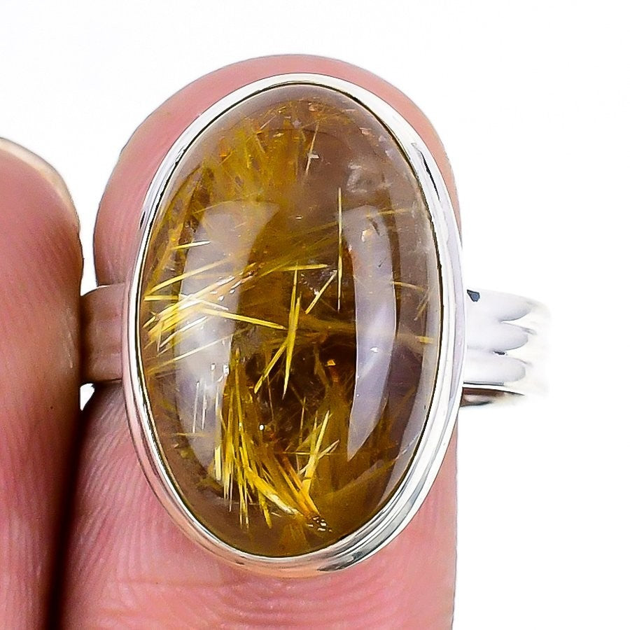 Golden Rutile Stone 925 Silver Sister Statement Elegant Channel Set Ring Jewelry