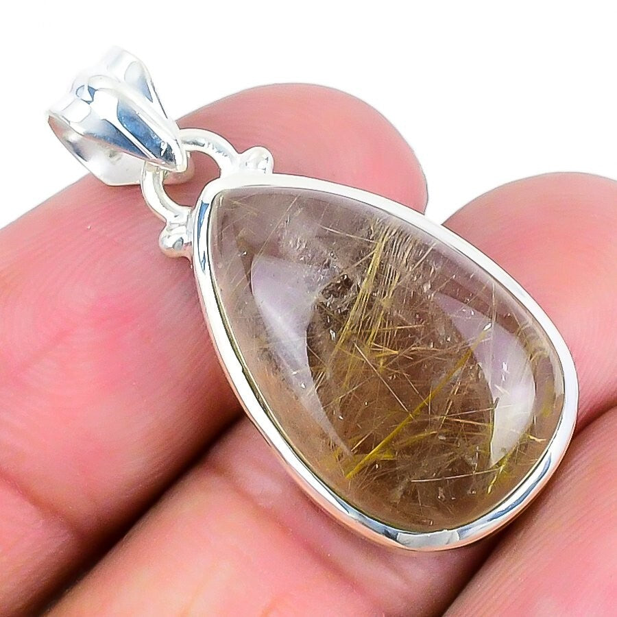 Golden Rutile Stone 925 Solid Silver Engagement Handcrafted Daughter New Pendant