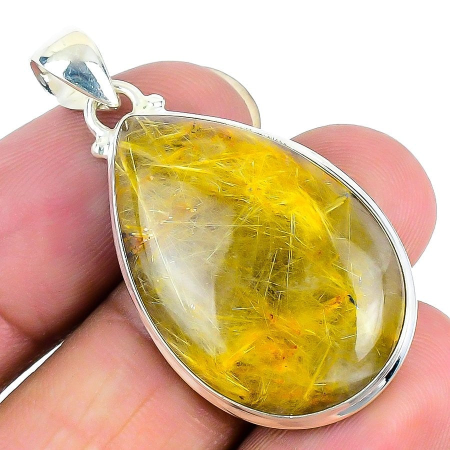 Golden Rutile Stone Best Daughters Gift Boho Pendant Jewelry 925 Sterling Silver