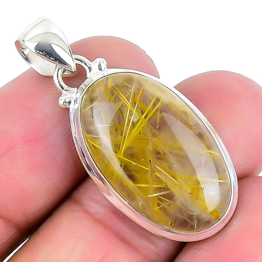 Golden Rutile Stone Ethnic Anniversary Mother Trendy Pendant 925 Sterling Silver