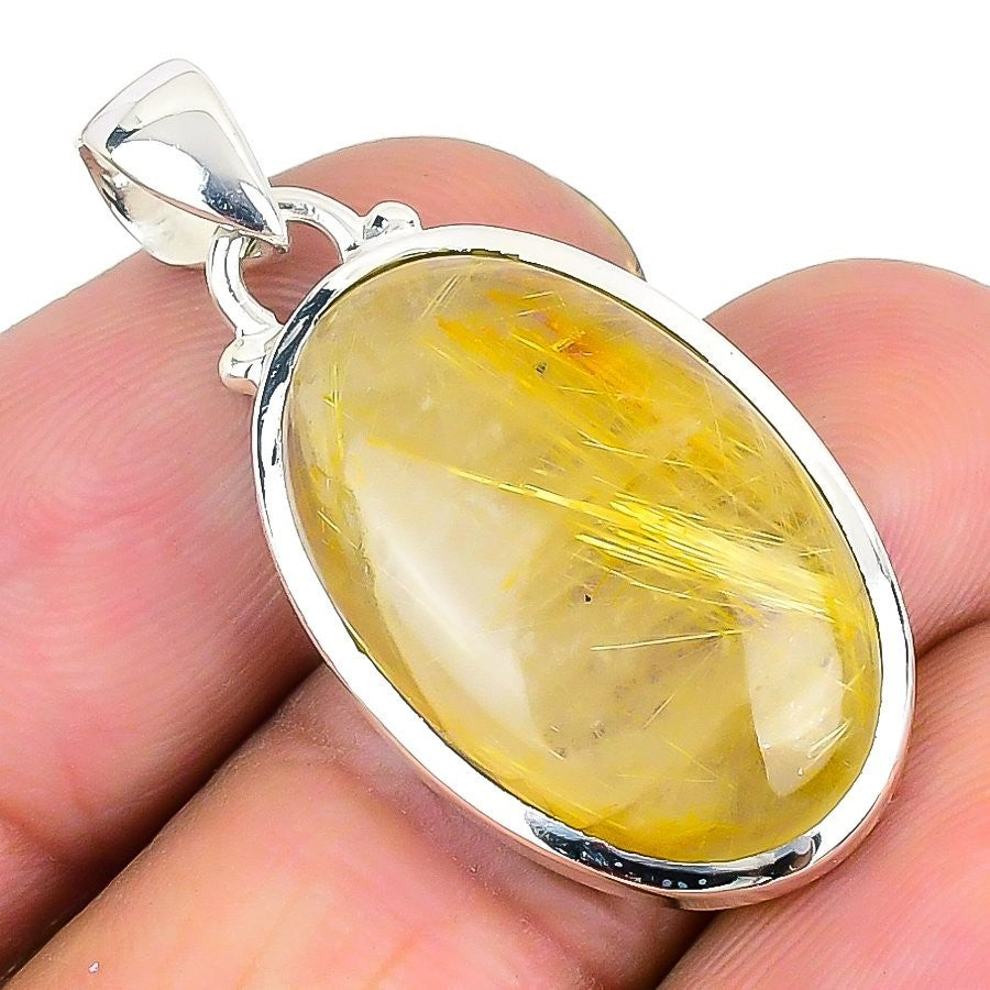 Golden Rutile Stone Solid Silver Handcrafted Daughters Day Wife Pendant Jewelry