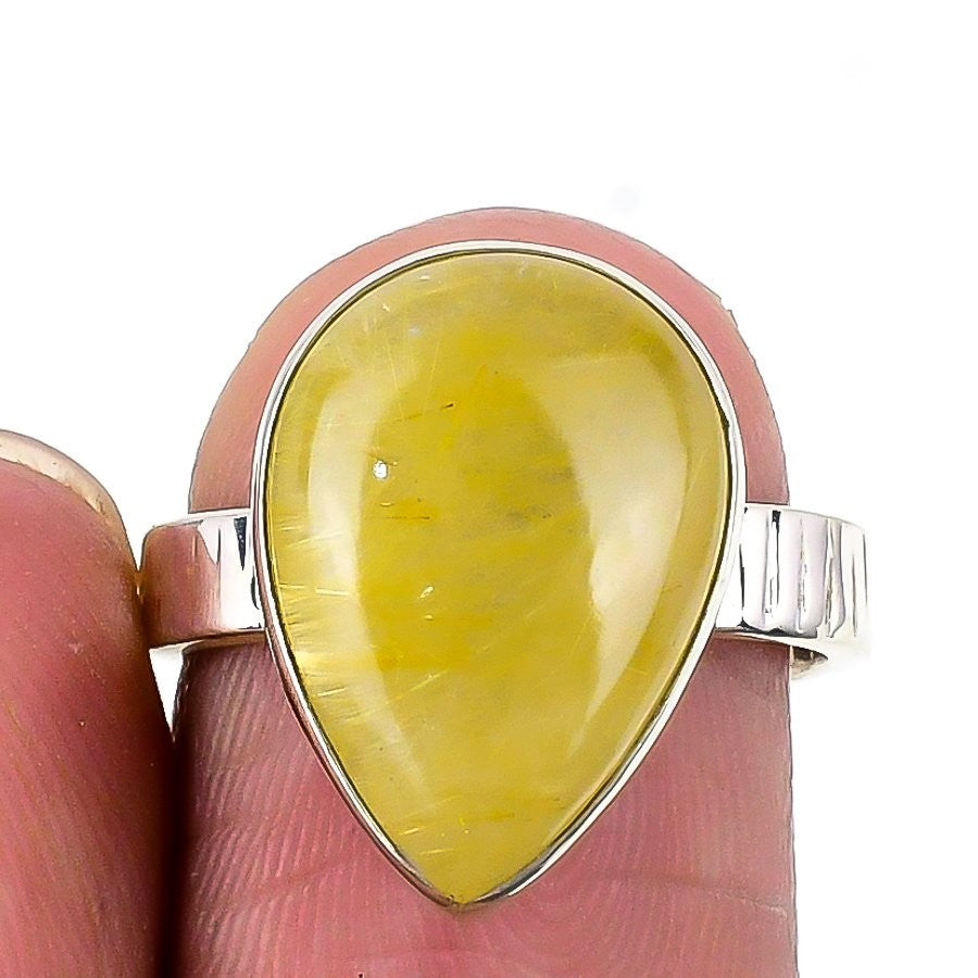 Golden Rutile Stone Solid Silver Statement Engagement Daughter Boho Ring Jewelry