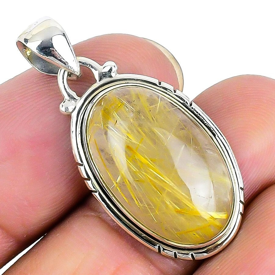 Golden Rutile Stone Sterling Silver Memorial Day Daughter Bezel Pendant Jewelry