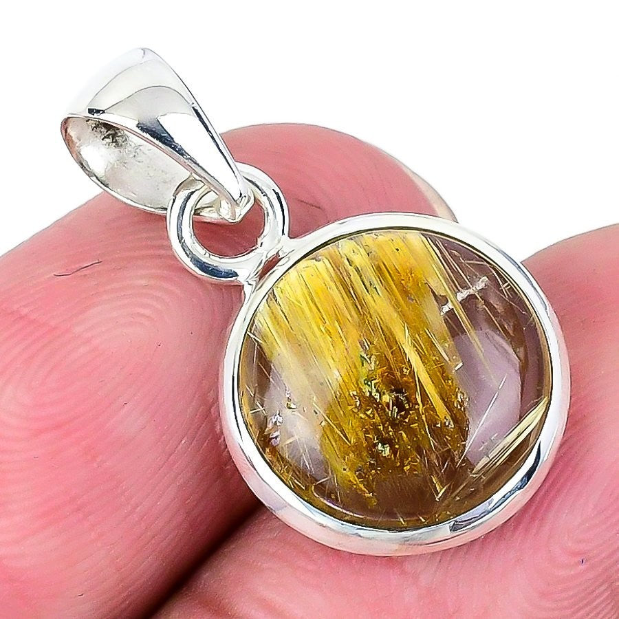 Golden Rutile Stone Wife Channel Set Elegant Boho Pendant Solid Sterling Silver