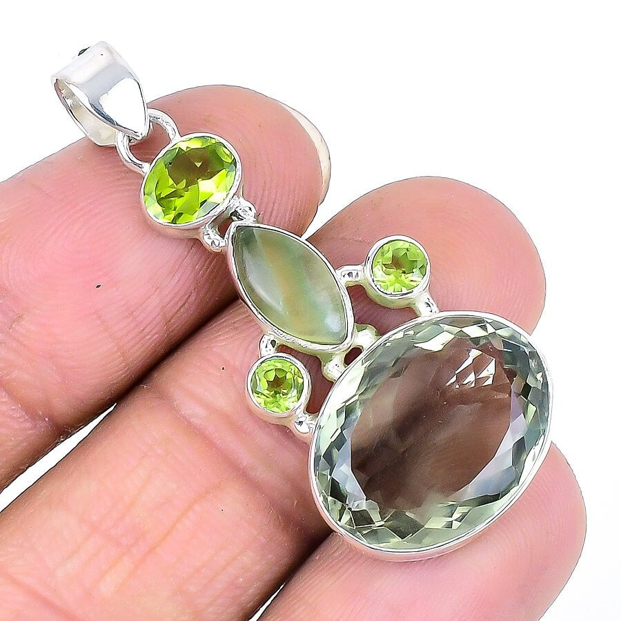 Green Amethyst Faceted Gemstone 925 Sterling Silver Wedding Sister Boho Pendant