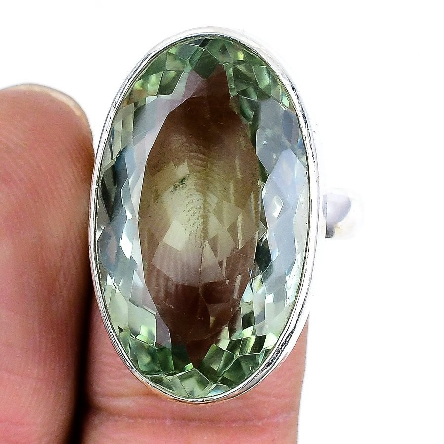 Elegant Green Amethyst Gemstone 925 Solid Silver Elegant in