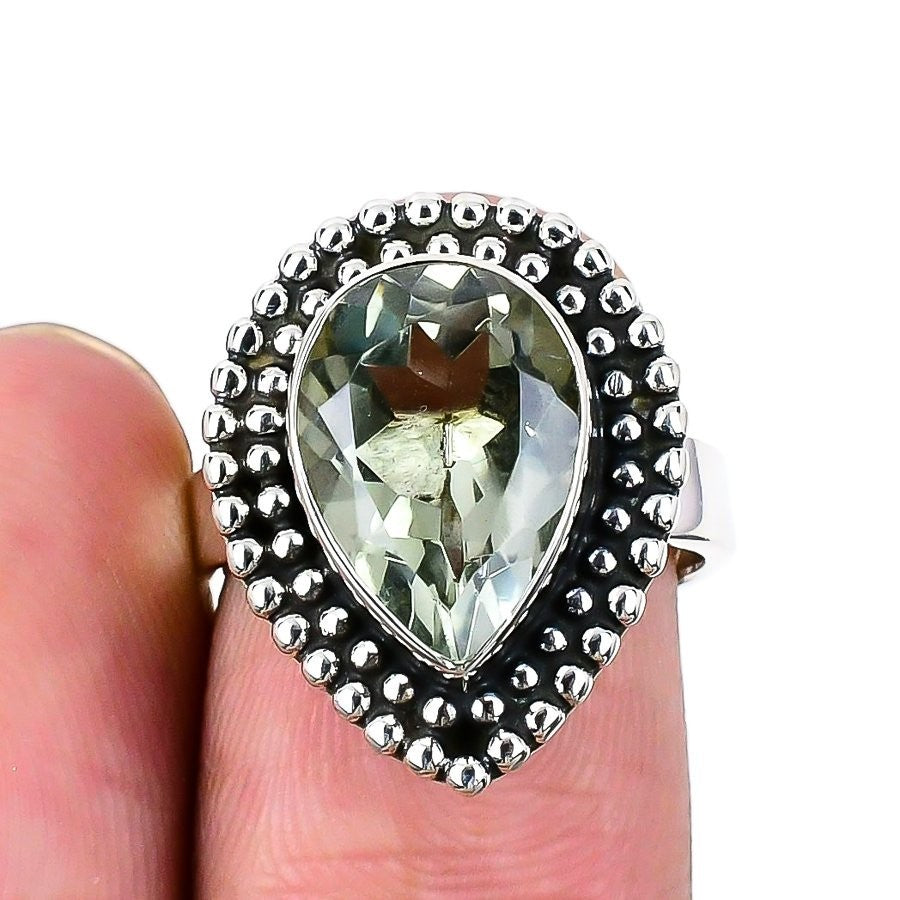 Green Amethyst Gemstone 925�Solid�Silver Wedding Statement Engagement New Ring