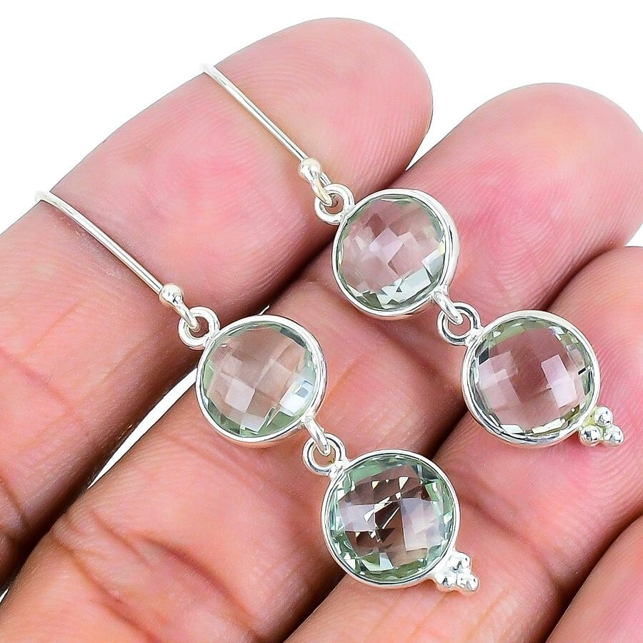 Green Amethyst Gemstone 925 Sterling Silver Drop Dangle Mothers Gift Earrings