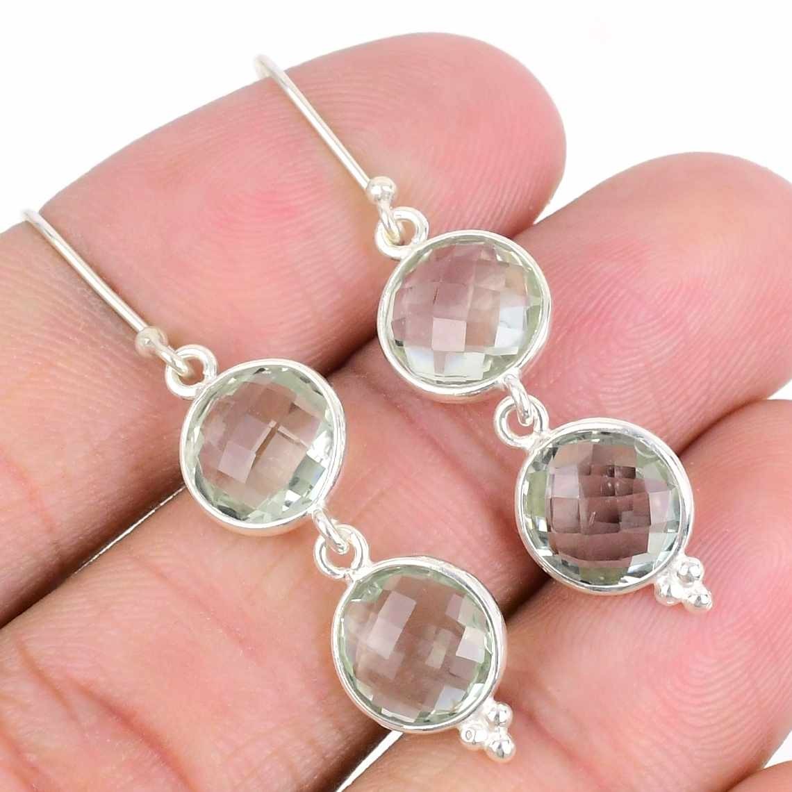 green Amethyst Gemstone 925 Sterling Silver Mother Drop Dangle Hook New Earrings